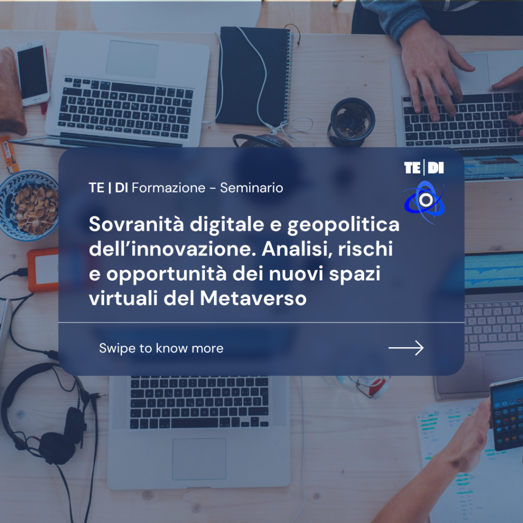 Te|Di promuove attività di ricerca, analisi e diffusione della conoscenza sui processi di digitalizzazione e sull’innovazione territoriale. Attraverso progetti, iniziative e attività di divulgazione, offre una lettura informata dei processi di trasformazione.